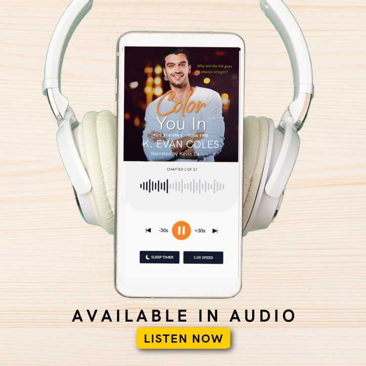 I’m incredibly excited that Color You In is finally available in audio format. Kevin Earlywine put so much heart into voicing Gus, Madoc, and Valerie and I just fell in love with this story all over again.